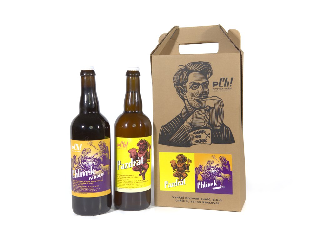 Dárková kartonová krabice 2 sedmičkových piv v kombinaci Pazdrát 11° a Chlívek vánoční 13° je pěkným vánočním dárkem pro každého pivaře.
