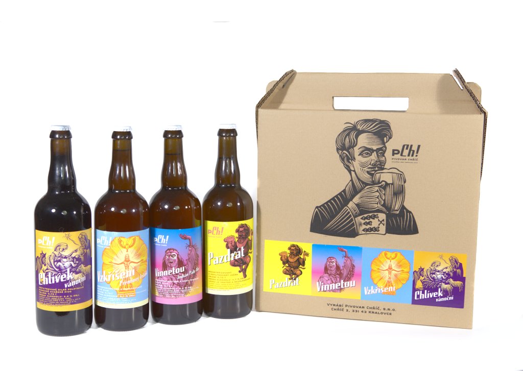 Dárková kartonová krabice 4 sedmičkových piv (Pazdrát, Chlívek vánoční, Vinnetou a Vzkříšení) je objemným a objevným darem pro každého pivaře. Mix piv se může měnit dle aktuální nabídky.